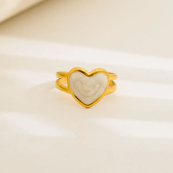 Αναδείξτε το στυλ σας με αυτό το εκλεπτυσμένο δαχτυλίδι από Gold Plated Steel 18K, σχεδιασμένο με διακριτική λευκή καρδιά που συμβολίζει την αγάπη και την κομψότητα.