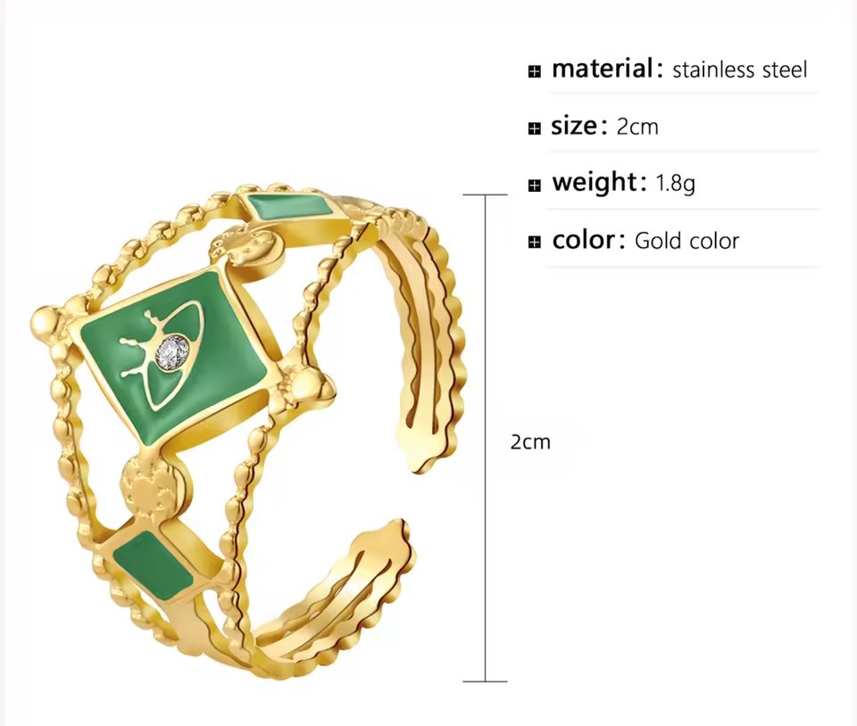Το Emerald Eye είναι ένα δαχτυλίδι που ξεχωρίζει. Συνδυάζει την πολυτέλεια του επιχρυσωμένου ανοξείδωτου ατσαλιού 18K με την ένταση του πράσινου σμάλτου και τη λάμψη ζιρκόν σε κάθε λεπτομέρεια. Το μοτίβο τύπου “eye charm” προσθέτει συμβολισμό προστασίας και καλής ενέργειας — ιδανικό για όσες αγαπούν κοσμήματα με χαρακτήρα.