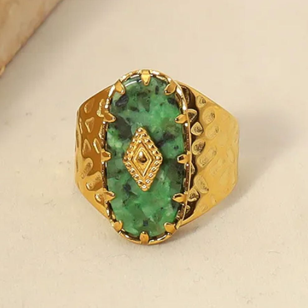 Green Boho – Δαχτυλίδι με Πράσινη Πέτρα & 18K Επιχρύσωση