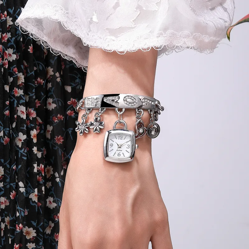 Γυναικείο Quartz Ρολόι – Βραχιόλι από Ανοξείδωτο Ατσάλι με Κρεμαστά Σχέδια