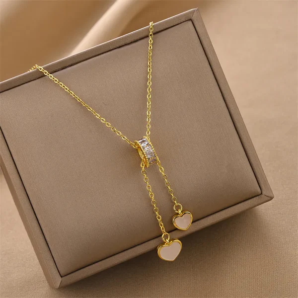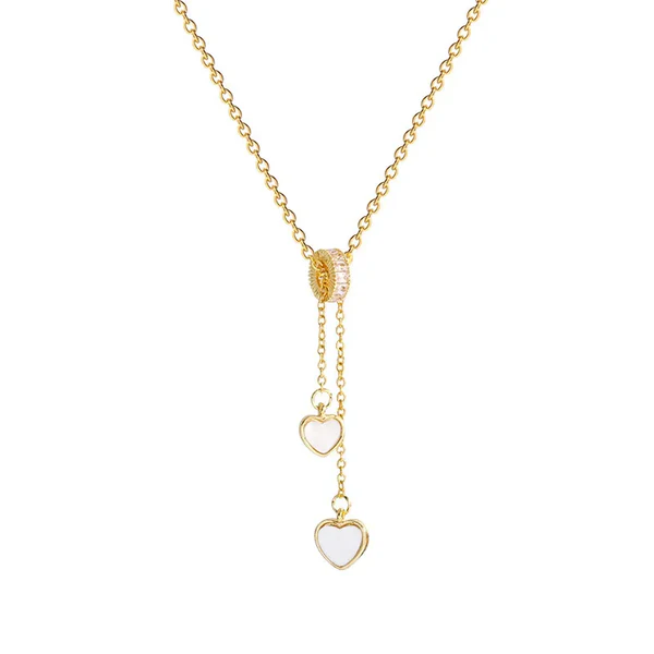 Aναδείξτε τη ρομαντική πλευρά του στυλ σας με αυτό το κομψό κρεμαστό κολιέ από ανοξείδωτο ατσάλι, διακοσμημένο με δύο λευκές καρδιές που συμβολίζουν την αγάπη και την αρμονία.