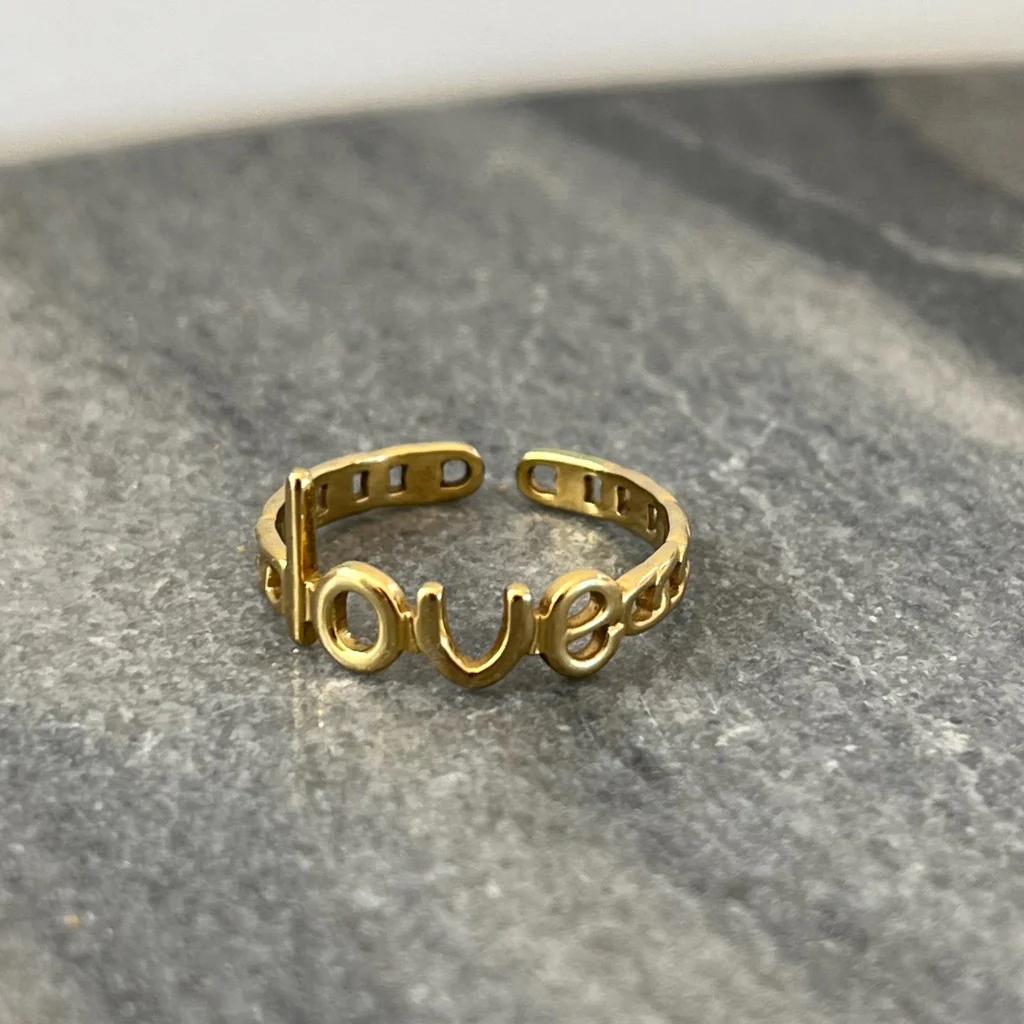 Το δαχτυλίδι “Love” είναι μια κομψή υπενθύμιση της αγάπης, σχεδιασμένο για να προσθέτει ένα ρομαντικό και φωτεινό άγγιγμα σε κάθε σου look.