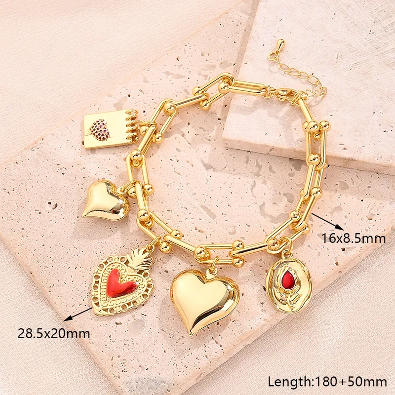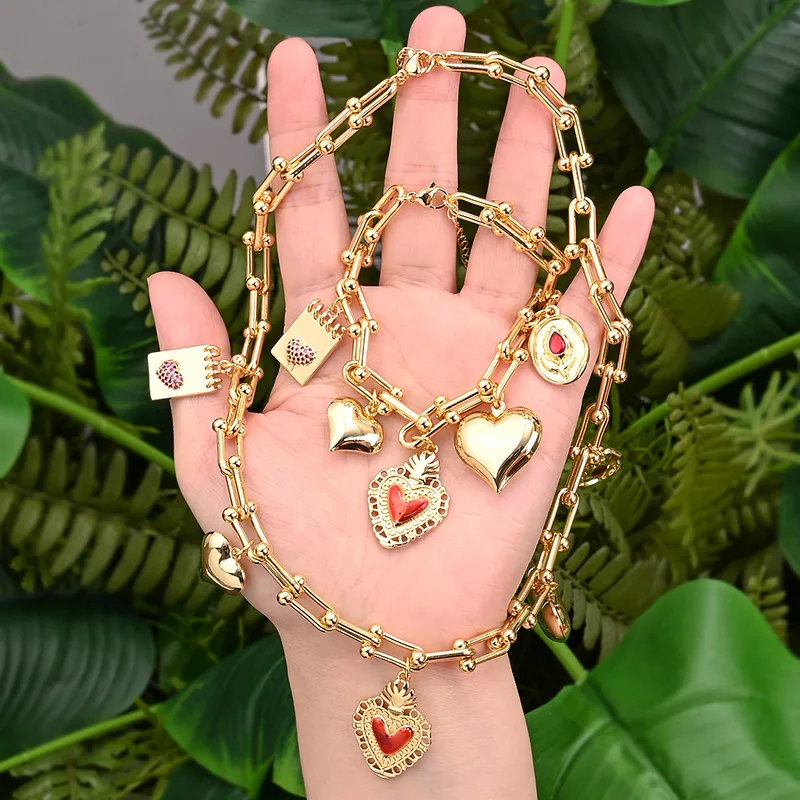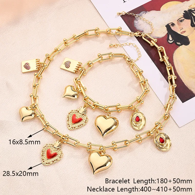 Αναβάθμισε το στυλ σου με το εντυπωσιακό σετ κολιέ και βραχιόλι επιχρυσωμένο 18Κ με καρδιές και πέτρες ζιρκόν. Ο μοναδικός σχεδιασμός του συνδυάζει αλυσίδα με ιδιαίτερους κρίκους και γοητευτικά charms σε σχήμα καρδιάς, ενώ οι λαμπερές πέτρες ζιρκόν χαρίζουν κομψότητα και λάμψη σε κάθε σου εμφάνιση.