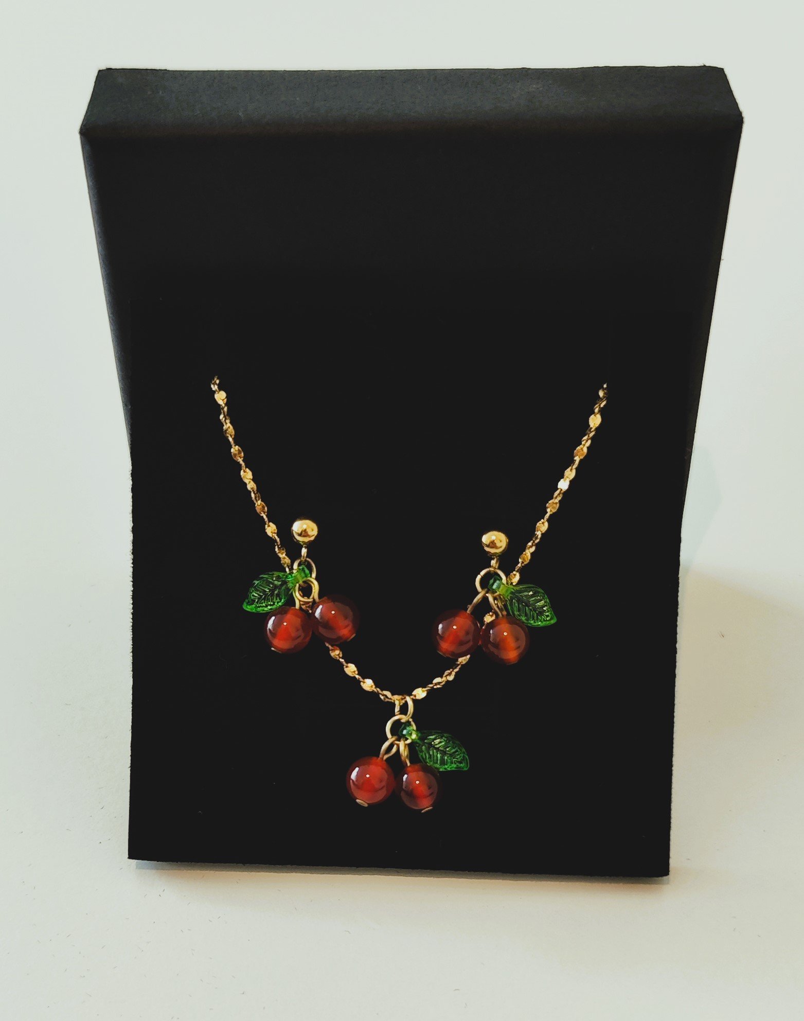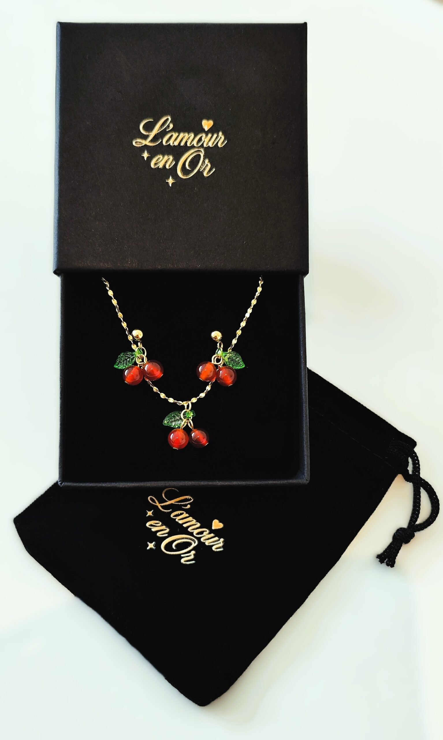 Αναδείξτε το στυλ σας με αυτό το μοναδικό σετ κοσμημάτων που περιλαμβάνει ένα κολιέ και σκουλαρίκια με παιχνιδιάρικα κερασάκια. Ο χρυσός τόνος και τα ζωηρά χρώματα των κερασιών προσδίδουν μια φρέσκια και χαρούμενη αισθητική με γοητεία και λάμψη. Το σετ είναι ιδανικό για καθημερινές εμφανίσεις, ρομαντικά ραντεβού ή ως δώρο σε κάποιο αγαπημένο πρόσωπο.