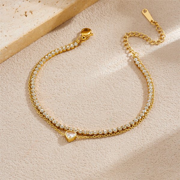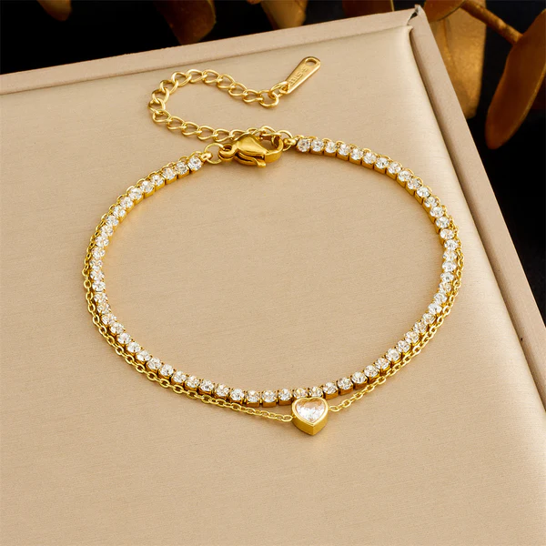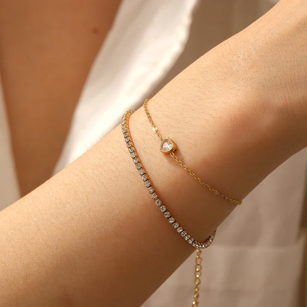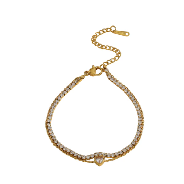 Αναδείξτε τη ρομαντική πλευρά του στυλ σας με αυτό το φίνο βραχιόλι από επιχρυσωμένο ατσάλι 18Κ, διακοσμημένο με καρδιά και λαμπερή αλυσίδα zircon. Ο κομψός σχεδιασμός του προσφέρει θηλυκότητα και λάμψη, καθιστώντας το ιδανικό για καθημερινή χρήση αλλά και για πιο ιδιαίτερες εμφανίσεις.